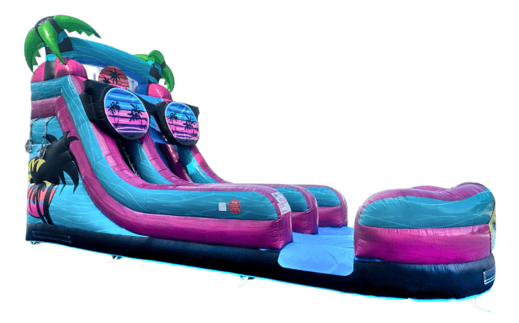 Life is truly a beach with our 18' Beach Vibes inflatable waterslide. Bring the sun-soaked fun of the shore to your backyard with this 18-foot single-lane waterslide. Designed for thrilling, family-friendly rides, it offers a tall, smooth ride down. Perfect for all ages. The slide has bright, beach-inspired colors and graphics, setting the mood for summer parties, birthday celebrations, and community events. Wet or dry use